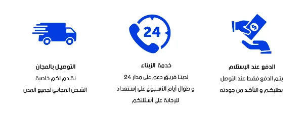 الأمر بسيط جدا بعد أن تطلب المنتج من خلال ملأ الإستمارة سيتصل بك أحد موظفي الشركة ليؤكد معك الطلب، و سنرسل لك المنتج في غضون 24 إلى48 ساعة الدفع يكون عند الاستلام لدينا فريق توصيل محترف يوصل لك المنتج أينما كنت خلال مدة 24 الى48 ساعة، خدمة التوصيل مجانية ٪100.